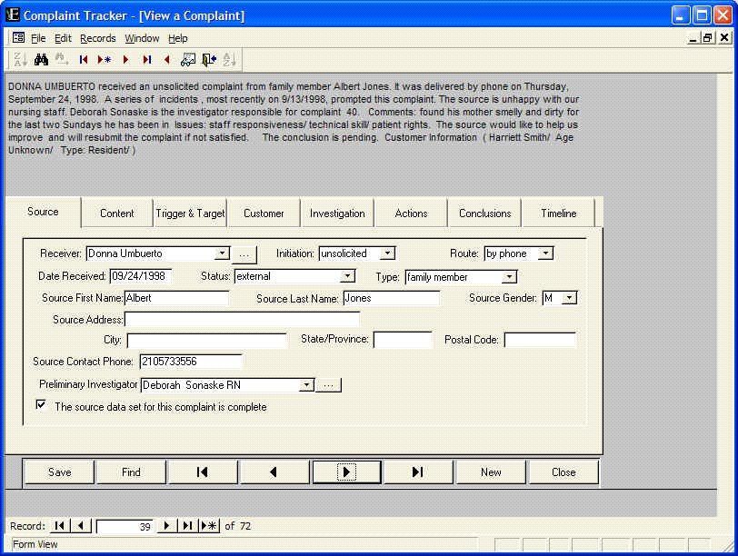 & Services Cynosure Software offers software tools for risk management and service recovery in your long term care organization. In addition, Cynosure Software provides services to help you get the most out of your investment in our software tools. Complaint TrackerComplaint Tracker provides a database solution to complaint management. Key features of Complaint Tracker include: